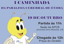 Amanhã, dia 19 de outubro, a Associação de Paralisia Cerebral de Évora (APCE) vai organizar a primeira Caminhada da Paralisia Cerebral de Évora, com partida marcada para as 11h00 na sede da APCE [os participantes deverão chegar meia hora mais cedo].