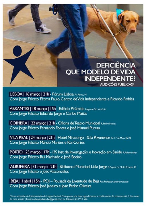A proposta governamental de um Modelo de Apoio à Vida Independente prevê projetos-piloto para o período 2017-2020, e está atualmente em consulta pública até 24 de março. O envio de comentários e/ou sugestões pode ser efetuado para os seguintes endereços eletrónicos: Este endereço de email está protegido contra piratas. Necessita ativar o JavaScript para o visualizar. ou Este endereço de email está protegido contra piratas. Necessita ativar o JavaScript para o visualizar.