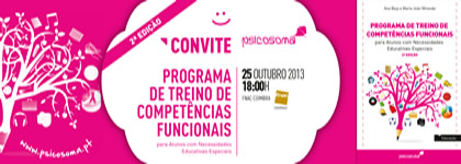O lançamento da 2.ª edição do livro Programa de Treino de Competências Funcionais para Alunos com NEE de Ana Beja e Maria João Miranda tem lugar na FNAC do Fórum de Coimbra, no dia 25 de outubro, às 18h00.