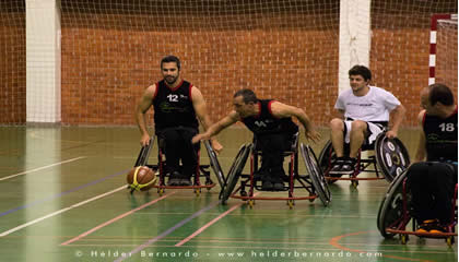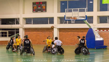 Para que fosse uma partida disputada em igualdade de circunstâncias, os basquetebolistas da UA e do Illiabum jogaram em cadeira de rodas disponibilizadas pela APD.