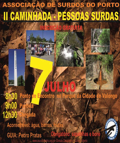 O Parque da Cidade de Valongo é palco de uma caminhada no dia 7 de junho, organizada pelo Departamento Cultural e Recreativo - Divisão Desportiva - da Associação de Surdos do Porto.