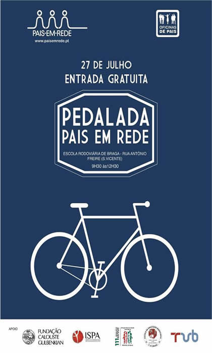 No dia 27 de julho, das 9h30 às 12h30, a Associação Pais-Em-Rede organiza a partir da Escola Rodoviária de Braga à Rua António Freire (S. Vicente) a Pedalada Pais em Rede.