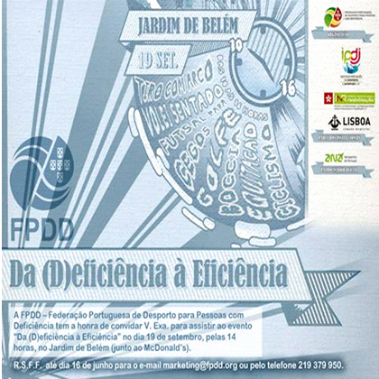 Realiza-se no dia 19 de setembro, nos Jardins de Belém, em Lisboa, entre as 10h00 e as 16h00, o evento “Da (D)eficiência à Eficiência”.