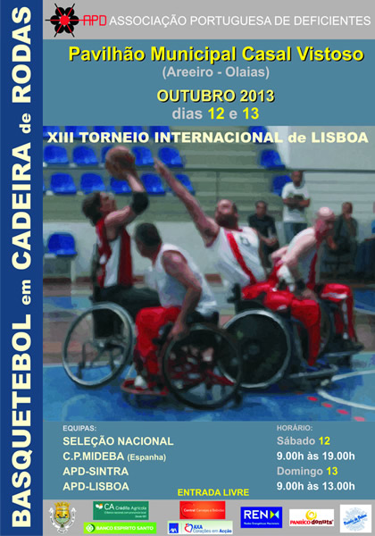A Associação Portuguesa de Deficientes vai realizar nos dias 12 e 13 de outubro o 13.º Torneio Internacional de Basquetebol em cadeira de rodas, no Pavilhão Municipal Casal Vistoso, em Lisboa.