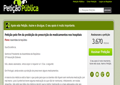 “Petição pelo fim da proibição de prescrição de medicamentos nos hospitais”