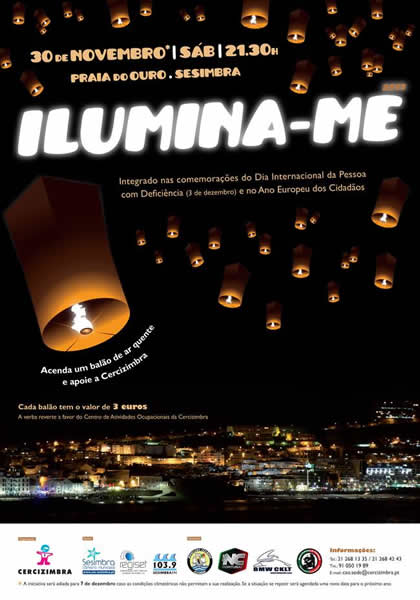 “Ilumina-me” é a ação que a Cercizimbra promove para o dia 30 de novembro, sábado, às 21h30, na Praia do Ouro, em Sesimbra para assinalar o Dia Internacional da Pessoa com Deficiência que se celebra a 3 de dezembro e como angariação de fundos para a instituição.