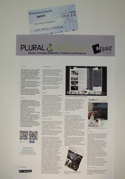 O poster da Plural&Singular, que esteve afixado durante três dias na Includit - Conferência Internacional para a Inclusão, em Leiria, venceu o prémio “Melhor Poster”.
