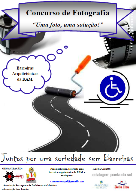 A Associação Portuguesa de Deficientes da Madeira (APD) em parceria com a Associação Sem Limites está a promover um concurso de fotografia intitulado "Uma foto, uma Solução" para captar através de fotografia as barreiras arquitetónicas da Região Autónoma da Madeira.