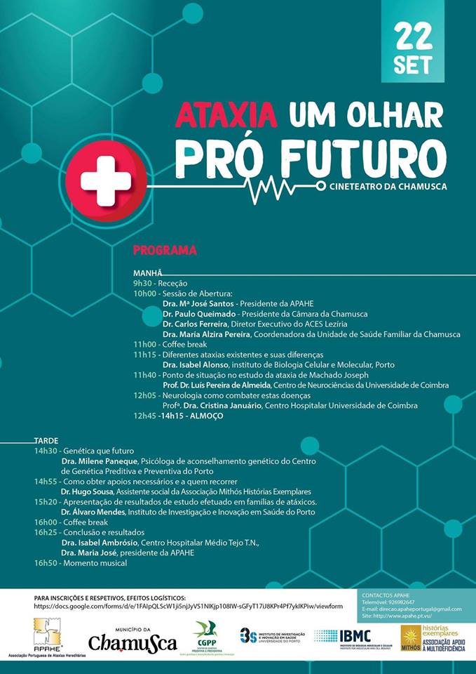 Organizado por APAHE - Associação Portuguesa de Ataxias Hereditárias, o evento tem início ás 9h30 e acaba às 17h00 e as comunicações vão incidir sobre a Ataxia de Machado-Joseph e a Ataxia de Friedreich.